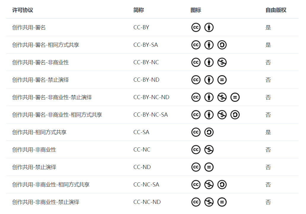 转自:https://zh.wikipedia.org/wiki/創作共用授權條款